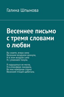 "Эти прекрасные стихи перенесут вас в весенний город Санкт-Петербург, где автор поделилась своими чувствами и эмоциями. В каждой строчке пробудится весеннее настроение, цветы заиграют красками, и вы ощутите нежность любви, которая обволакивает каждое слово. Галина Шпынова прекрасно справляется с выражением своих эмоций, и вы сможете почувствовать, как тонкий шарм ее слов переносит вас в мир истинной любви и радости от жизни."