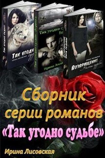 "Сборник книг серии «Так угодно судьбе», от Ирины Лисовской, представляет уникальную фантастическую историю, которая перемешивает жизнь обычных людей с оборотнями. В первой книге, «Так угодно судьбе», Ирина Лисовская рассказывает о любви между Альфа-оборотнем и обычной девушкой. Автор передает сложные испытания, через которые герои проходят, чтобы найти свое счастье. Во второй книге, «Так угодно судьбе. Вернись. Книга вторая», Оксана и Бета-оборотень Шон сталкиваются с трудностями и неопределенностью своей любви. Что ждет их в конце? Счастье или разлука? В третьей книге, «Так угодно судьбе. Возвращение. Нити судьбы», Ирина Лисовская вливает в сюжет девушку, оставленную судьбой в лесу. Выросшая среди оборотней, она неожиданно находит свою любовь среди них. От автора можно ожидать интересных поворотов и неожиданного финала, который заставит читателя задуматься о взаимодействии судьбы и любви."